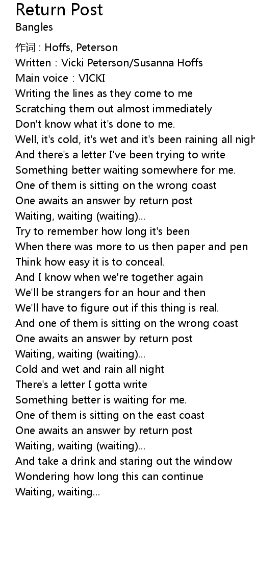 | 歌曲 | Return Post |
