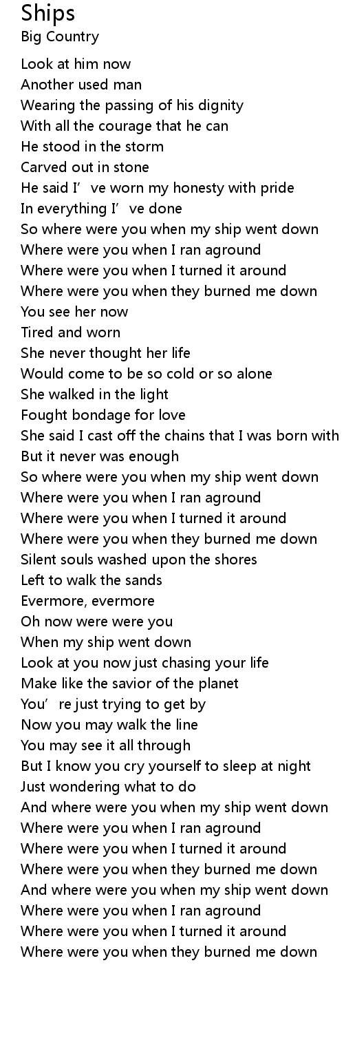| [00:37.49] | So where were you when my ship went down |