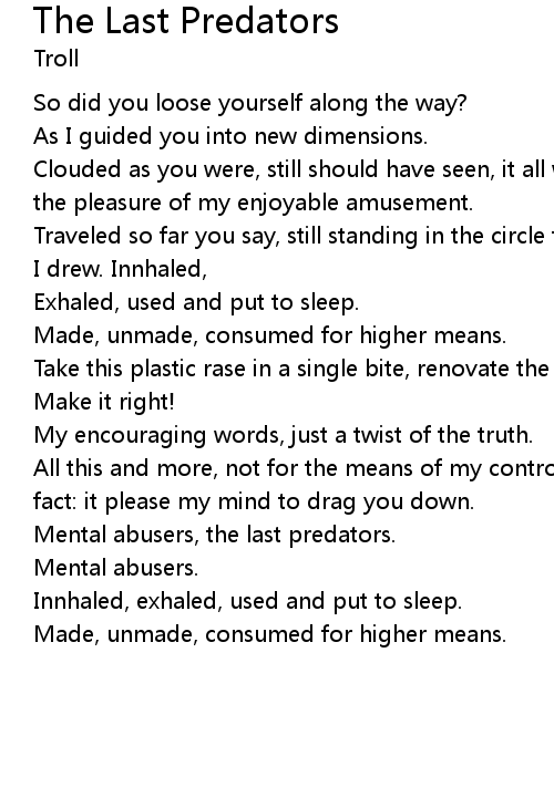 All this and more, not for the means of my control, but simply for a single fact: it please my mind to drag you down.