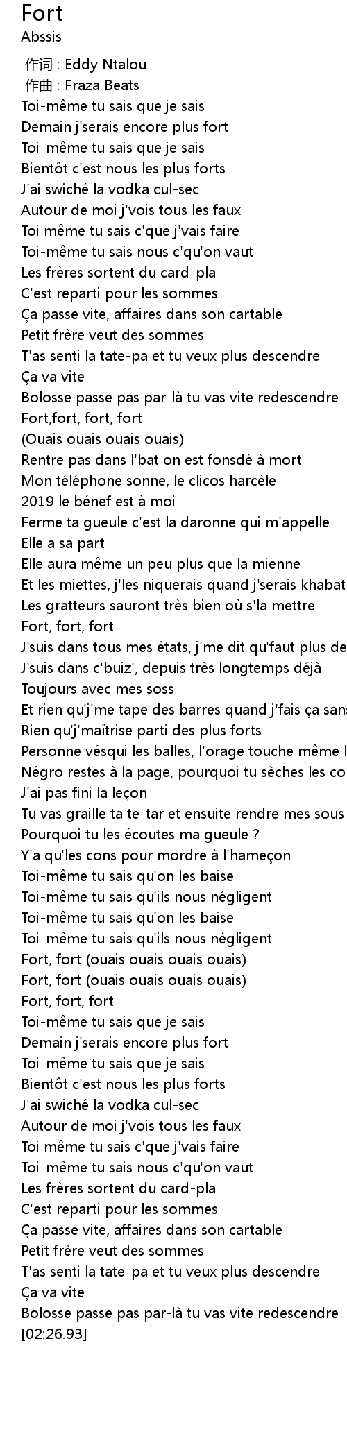 | [01:48.89] | Fort, fort (ouais ouais ouais ouais) |
