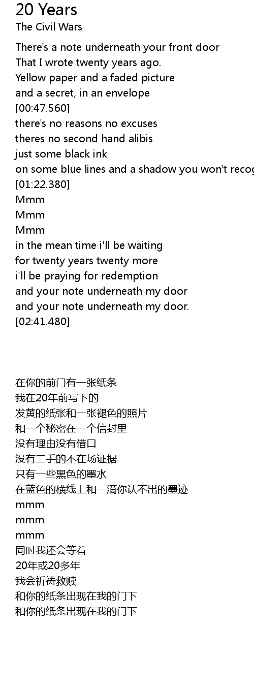 | [02:32.760] | 和你的纸条出现在我的门下 |
