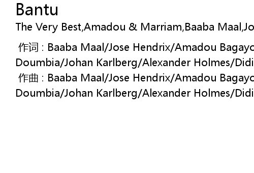 | [00:00.000] | 作曲 : Baaba Maal/Jose Hendrix/Amadou Bagayoko/Mariam Doumbia/Johan Karlberg/Alexander Holmes/Didi Gutmao/Esau Mwamwaya |