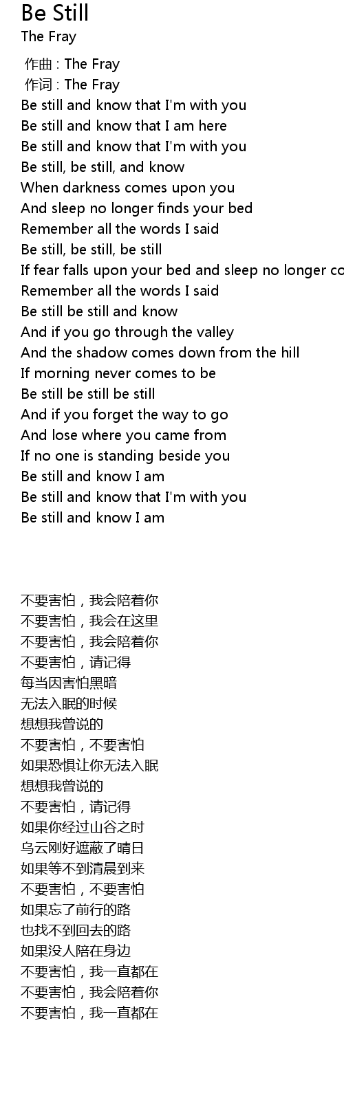 | [02:31.100] | Be still and know that I' m with you |