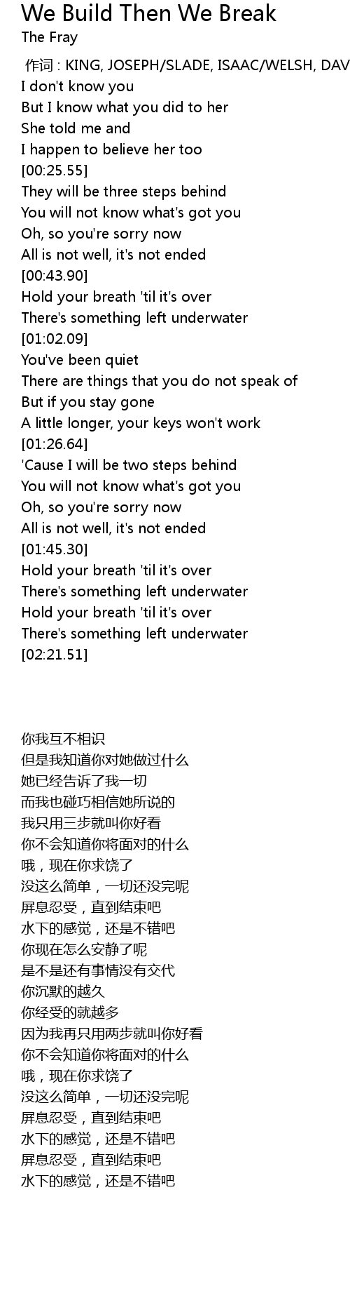 | [02:03.50] | Hold your breath 'til it's over |