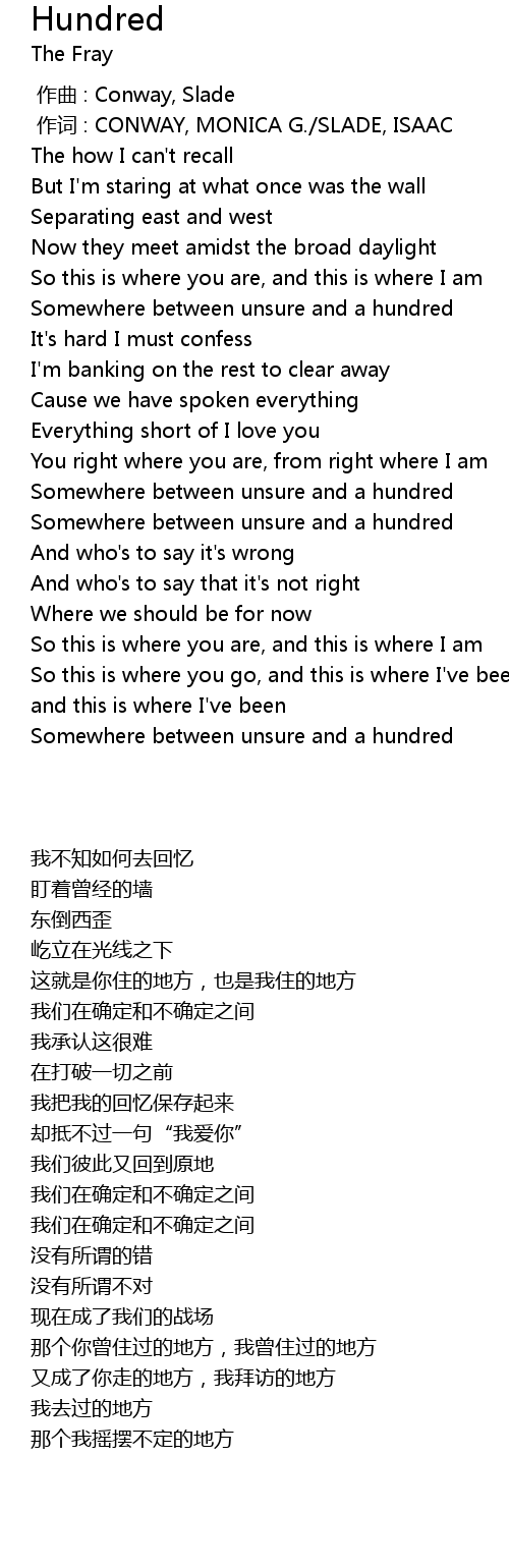 | [01:32.780] | Somewhere between unsure and a hundred |