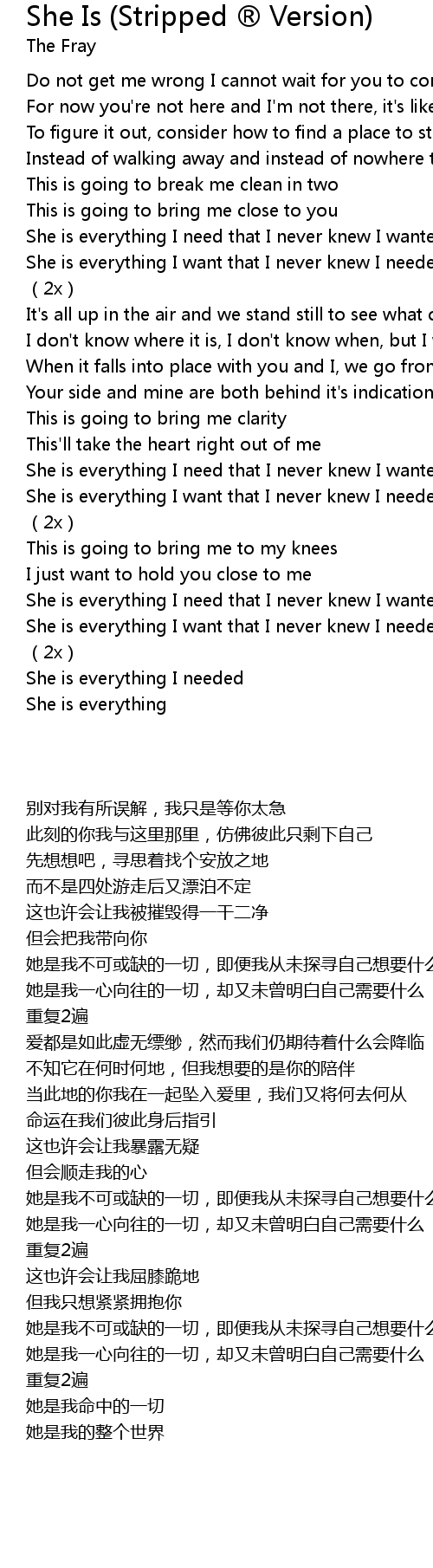 | [02:49.73] | She is everything I need that I never knew I wanted |