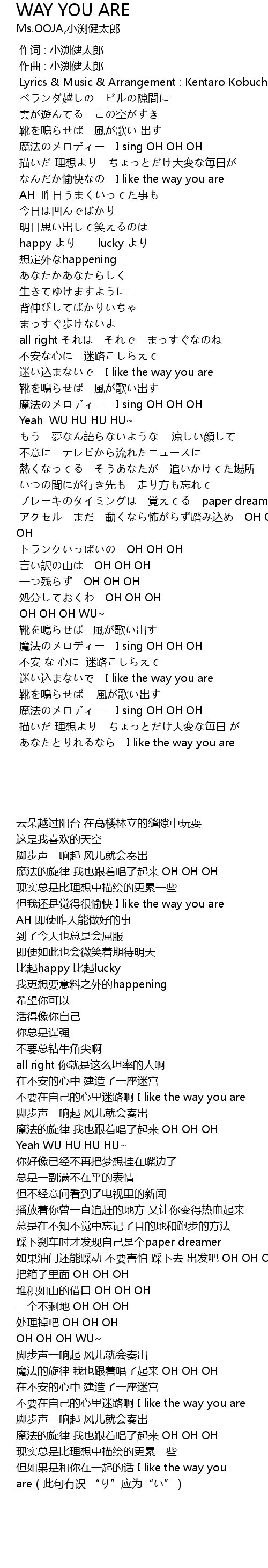 | [04:04.610] | 但如果是和你在一起的话 I like the way you are(此句有误 “り”应为“い”) |