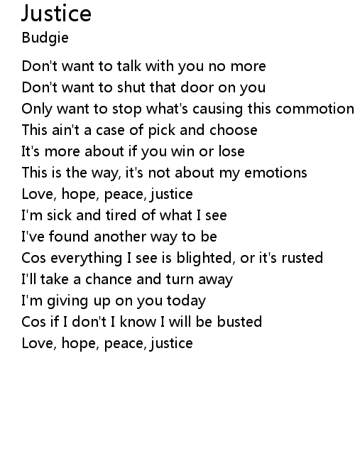 | Love, hope, peace, justice |
