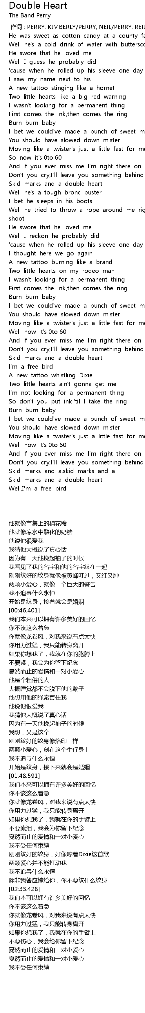 | [02:21.714] | 刚刚纹好的纹身,好像哼着Dixie这首歌 |