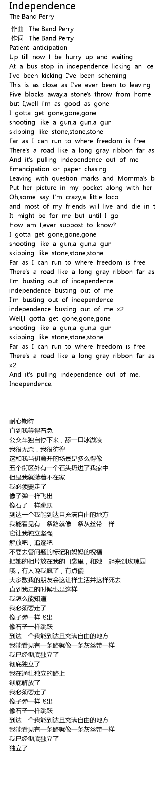 | [02:38.59] | independence busting out of me x2 |