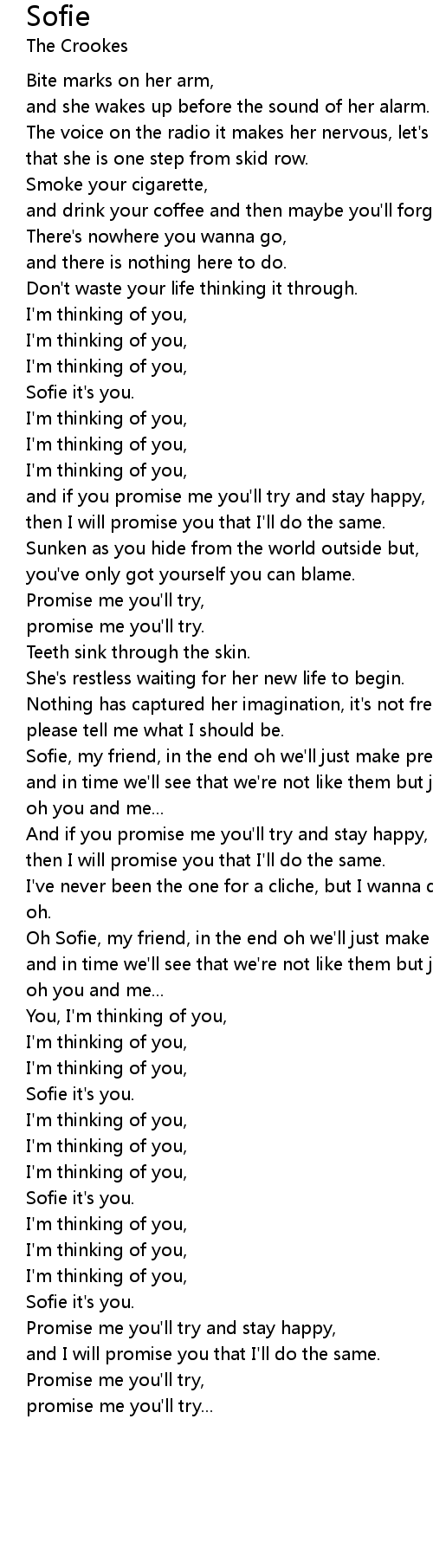 Oh Sofie, my friend, in the end oh we'll just make pretend, |