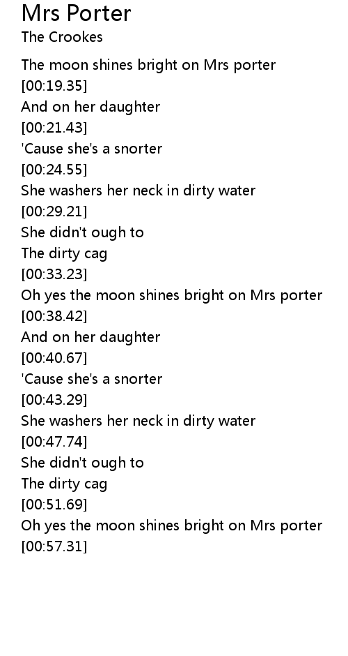 Oh yes the moon shines bright on Mrs porter |