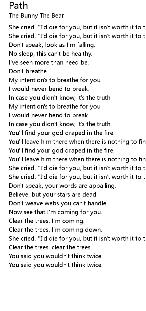 She cried, "I'd die for you, but it isn't worth it to trust me." [x4] |