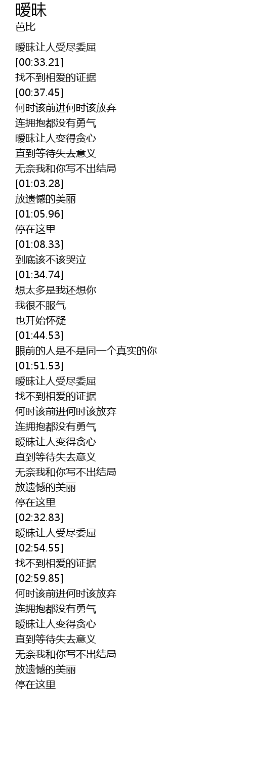 | [00:30.59] | 暧昧让人受尽委屈 |