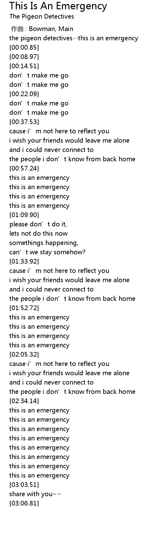| [02:48.75] | this is an emergency |