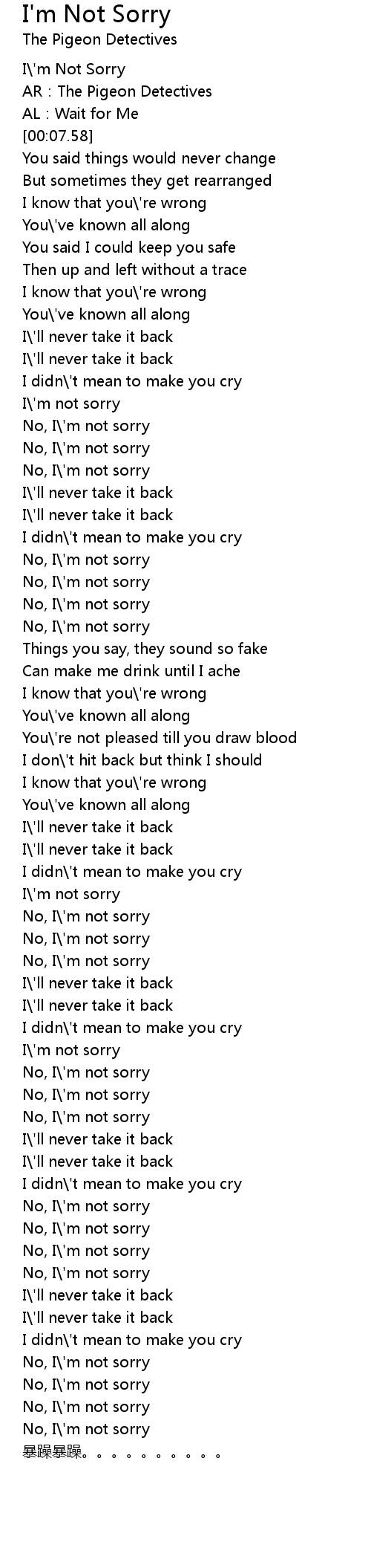 | [00:03.71] | I\'m Not Sorry |