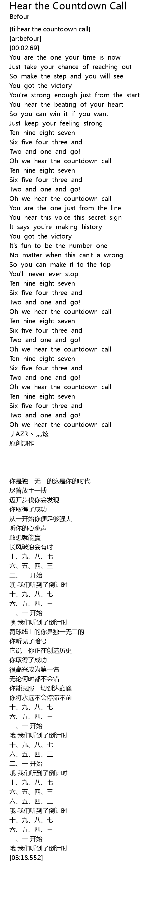 | [03:01.78] | 哦 我们听到了倒计时 |