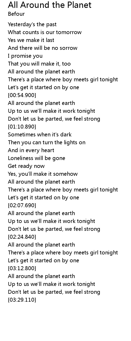 | [00:41.670] | All around the planet earth |