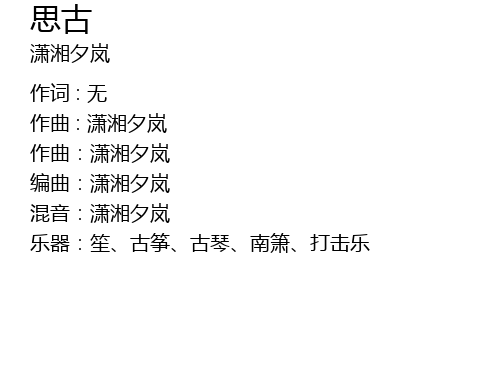 | 乐器:笙、古筝、古琴、南箫、打击乐 |