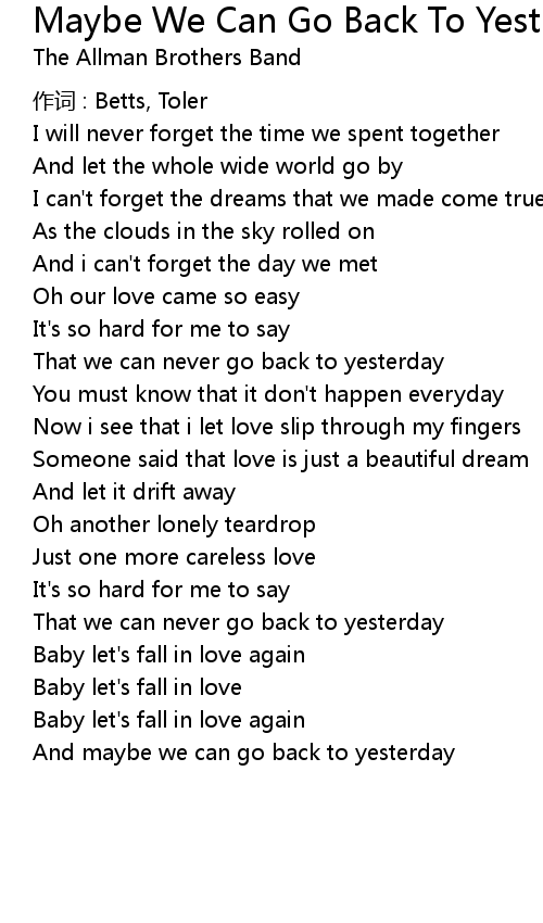 | 歌曲 | Maybe We Can Go Back To Yesterday |