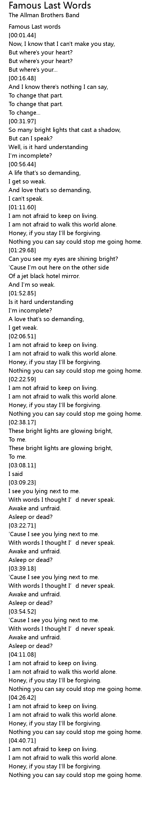 | [00:01.08] | Famous Last words |