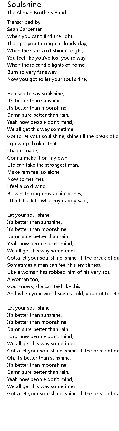 And when your world seems cold, you got to let your spirit take control. [Chorus] |