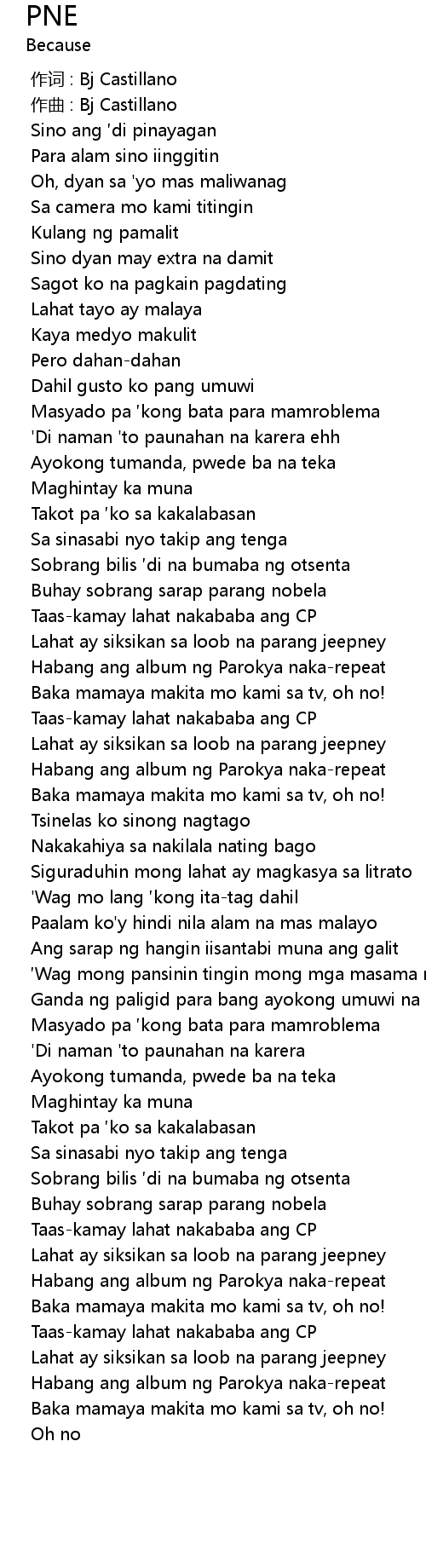 | [00:00.000] | 作词 : Bj Castillano |
