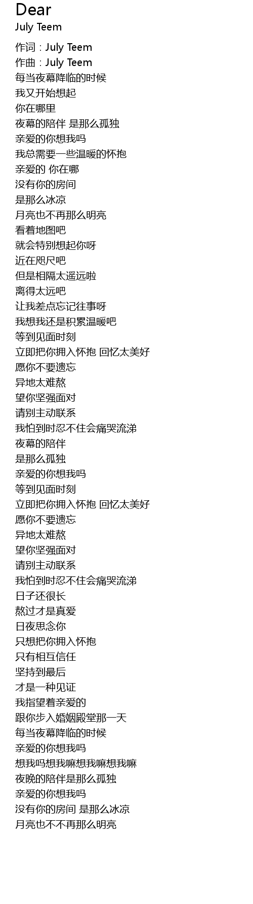 | [00:41.59] | qīn ài de nǐ xiǎng wǒ ma |