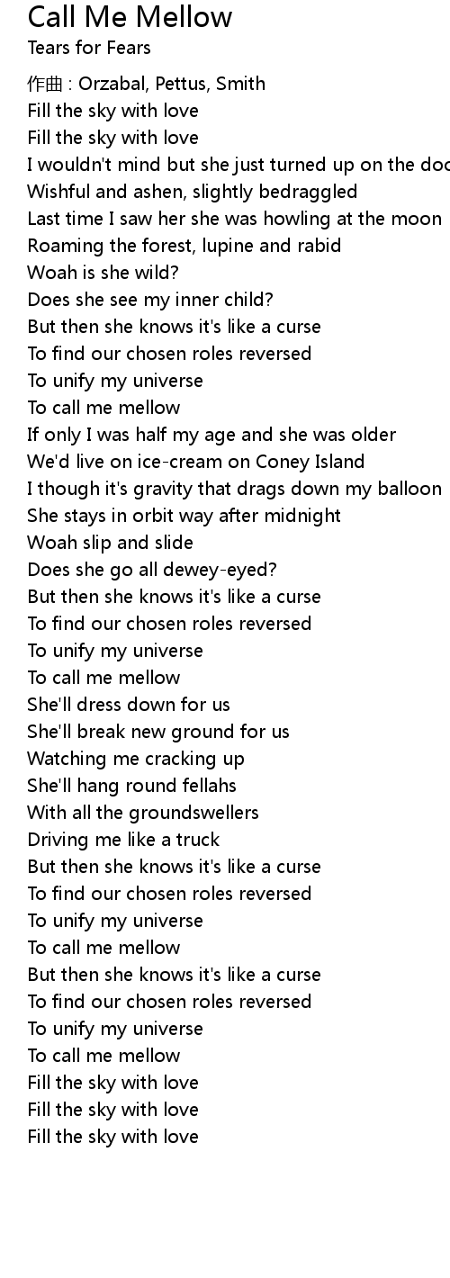 | 歌曲 | Call Me Mellow |