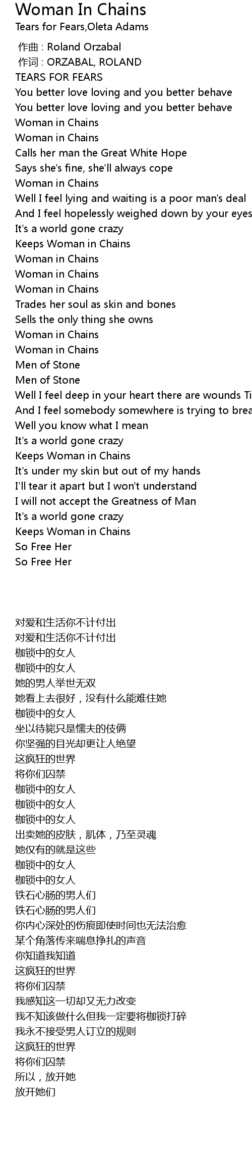 | 歌曲 | Woman In Chains |