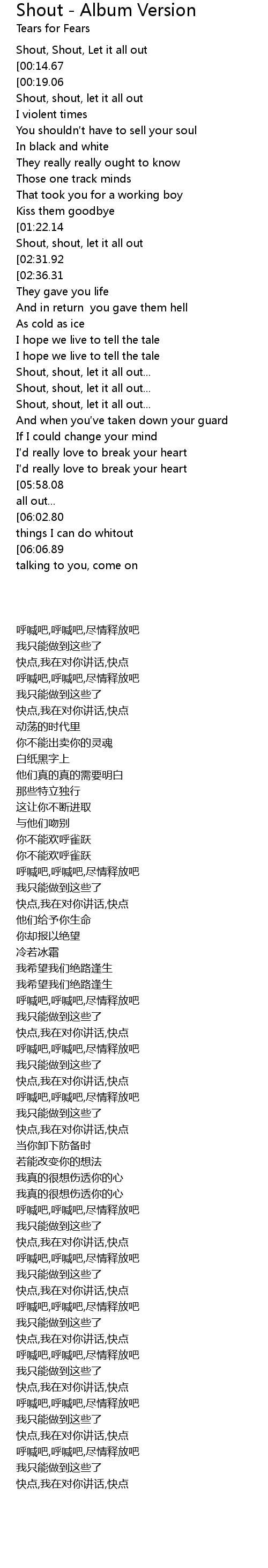| [02:27.27] | Shout, shout, let it all out... |