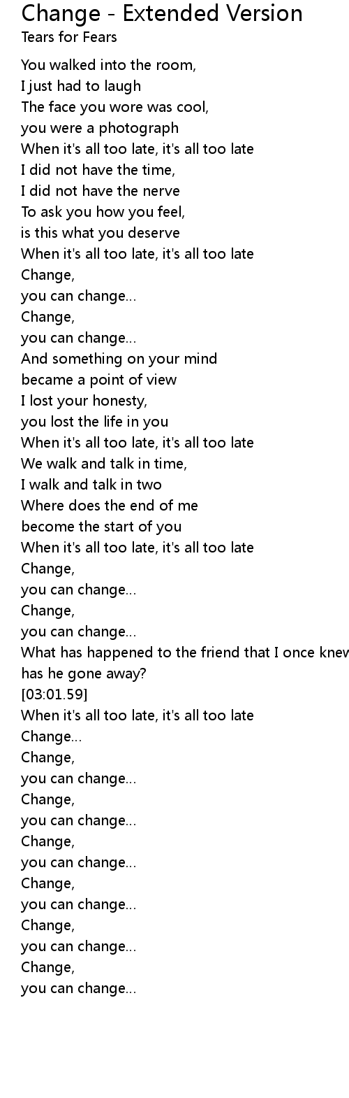 | [02:01.74] | When it' s all too late, it' s all too late |