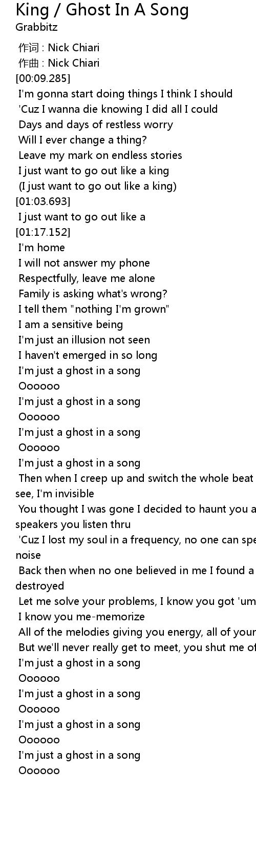 | [02:18.655] | Then when I creep up and switch the whole beat up, you won't even see, I'm invisible |