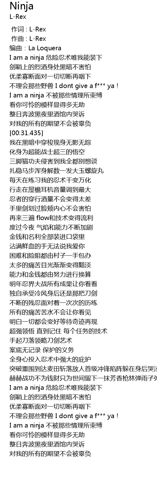 | [01:58.184] | I am a ninja 不被那些情理所束缚 |