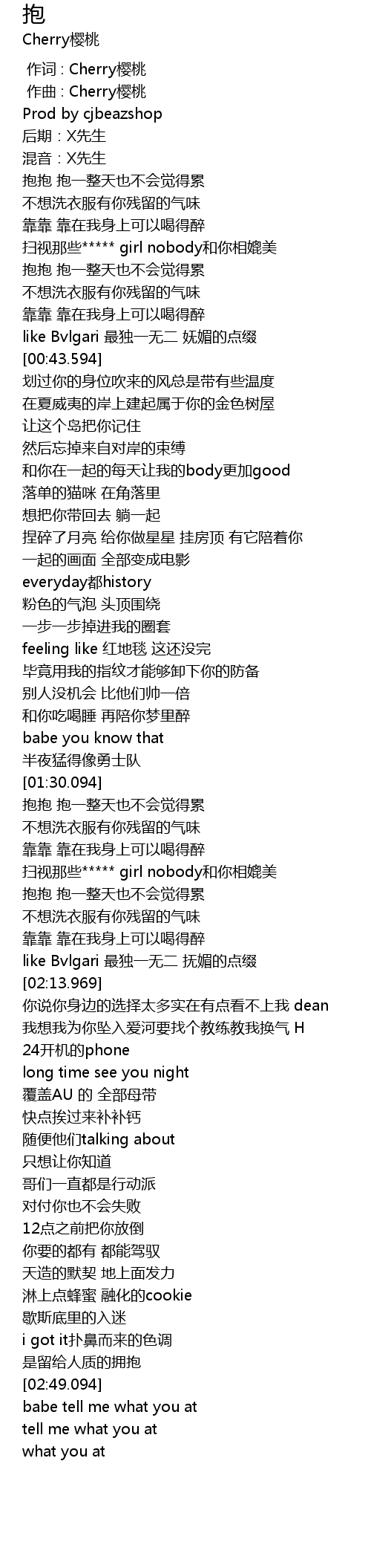 | [00:31.343] | 抱抱 抱一整天也不会觉得累 |