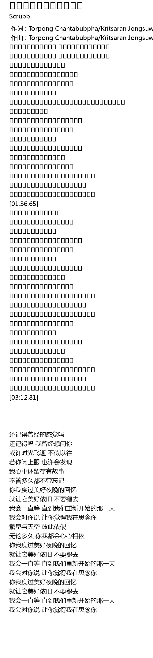 | [00:00.00] | 作词 : Torpong Chantabubpha/Kritsaran Jongsuwan |
