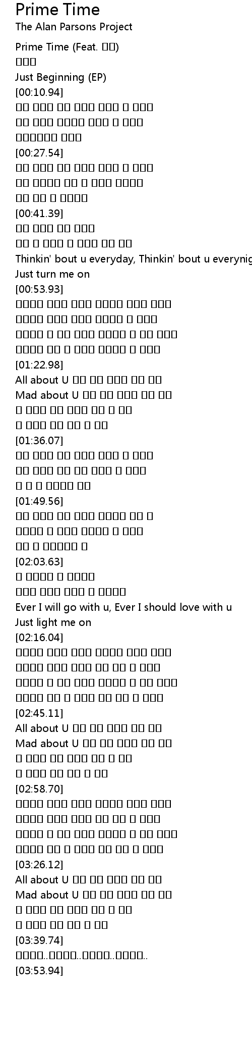 | [03:26.46] | All about U 다시 너의 전부를 갖고 싶어 |