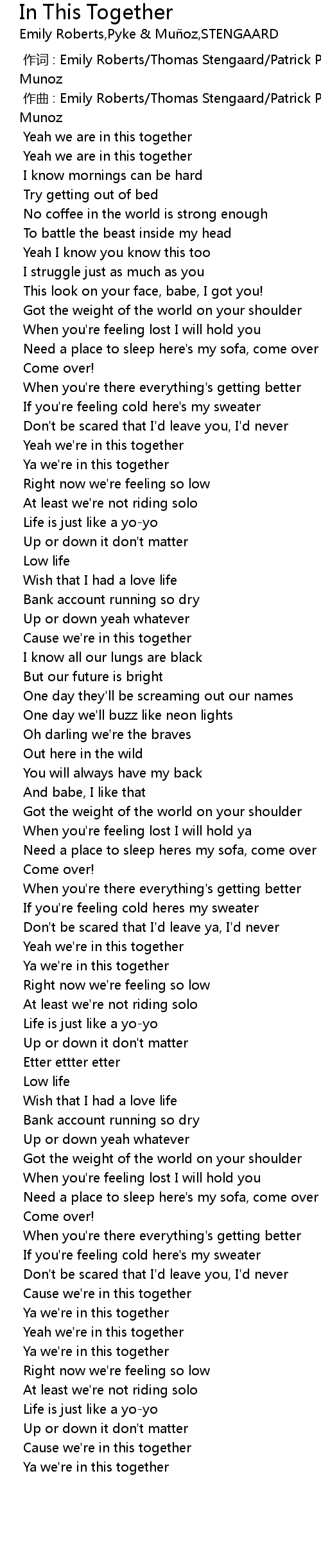 | [02:53.292] | Yeah we' re in this together |