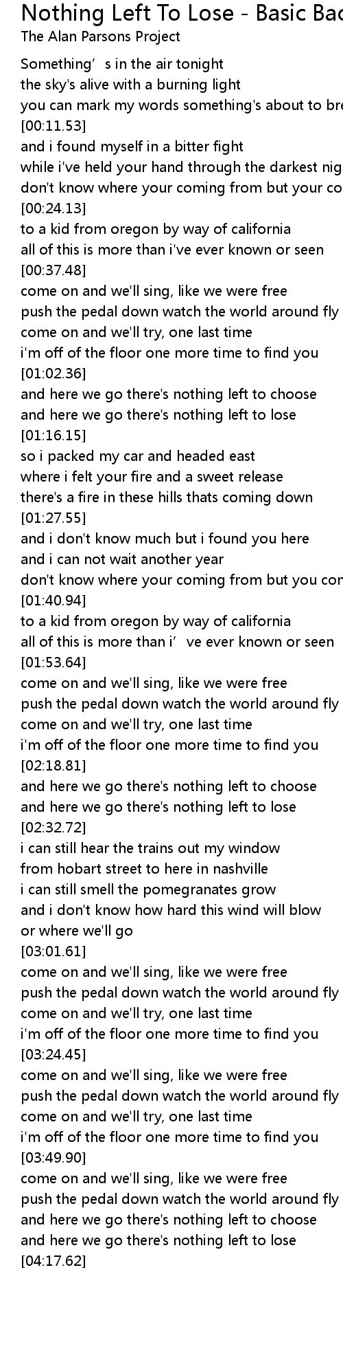 | [04:09.55] | and here we go there' s nothing left to lose |