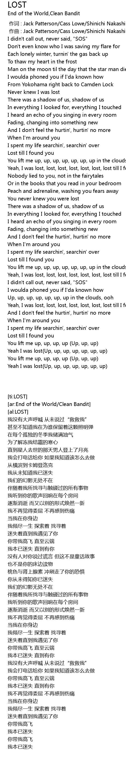 | [03:26.06] | Yeah I was lost Up, up, up, up, up, up, up |