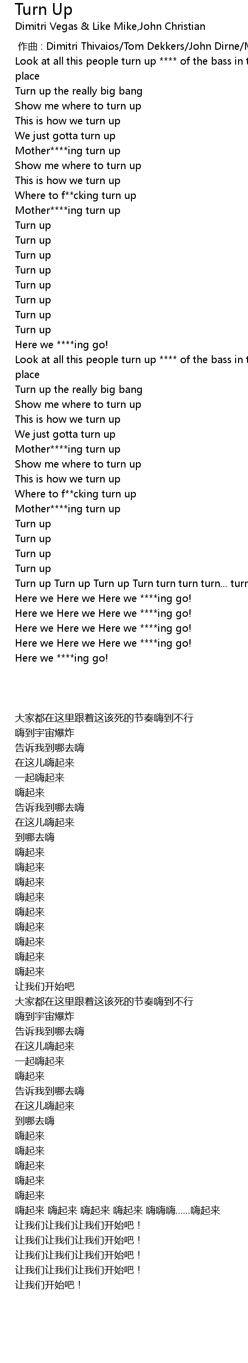 | [02:16.490] | Turn up Turn up Turn up Turn turn turn turn... turn up |