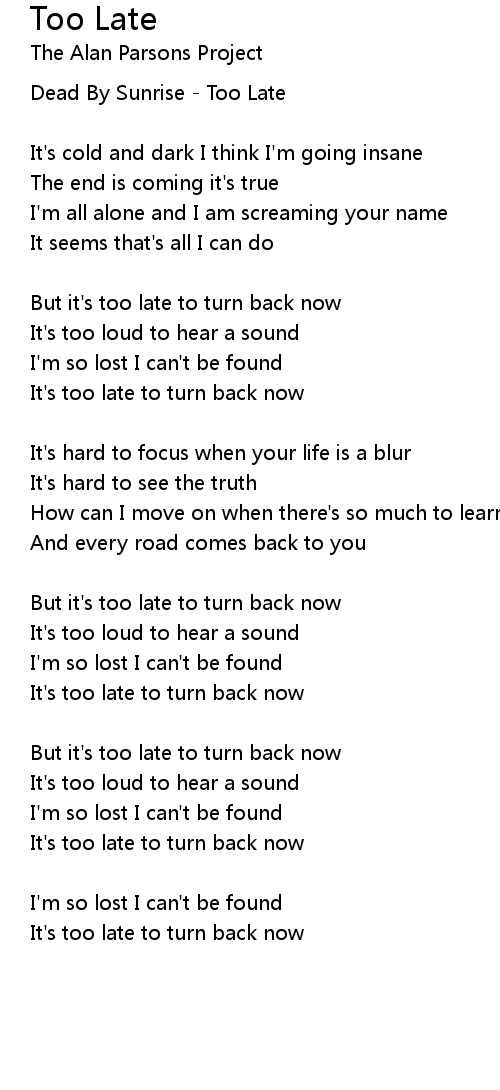 It's too late to turn back now |