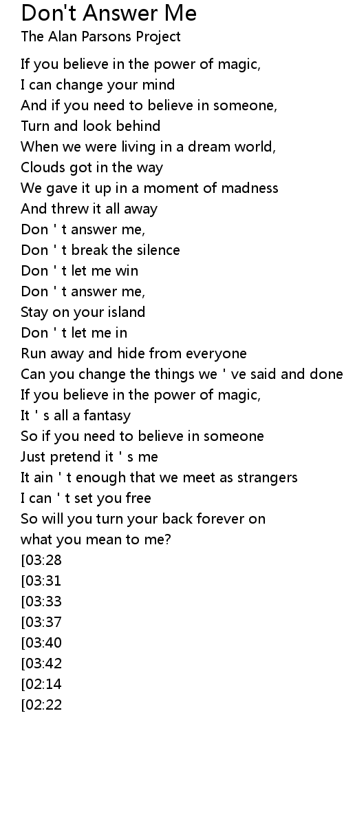 | [04:02][03:37][03:12][02:05] | Don t answer me, |