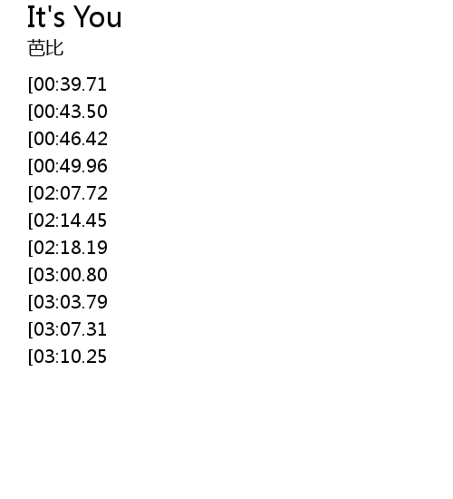 | [02:58.57][02:18.19][01:03.91] | It' s you It' s you |