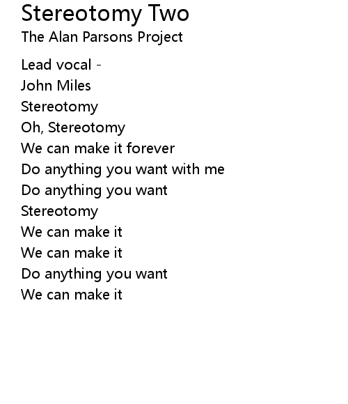 | 歌曲 | Stereotomy Two |