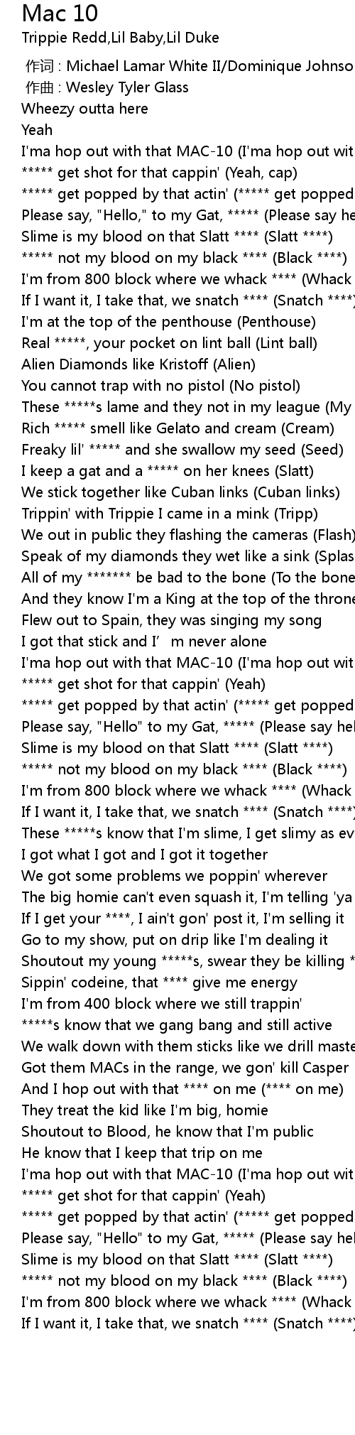 | [01:47.55] | I'ma hop out with that MAC-10 (I'ma hop out with that MAC-10) |