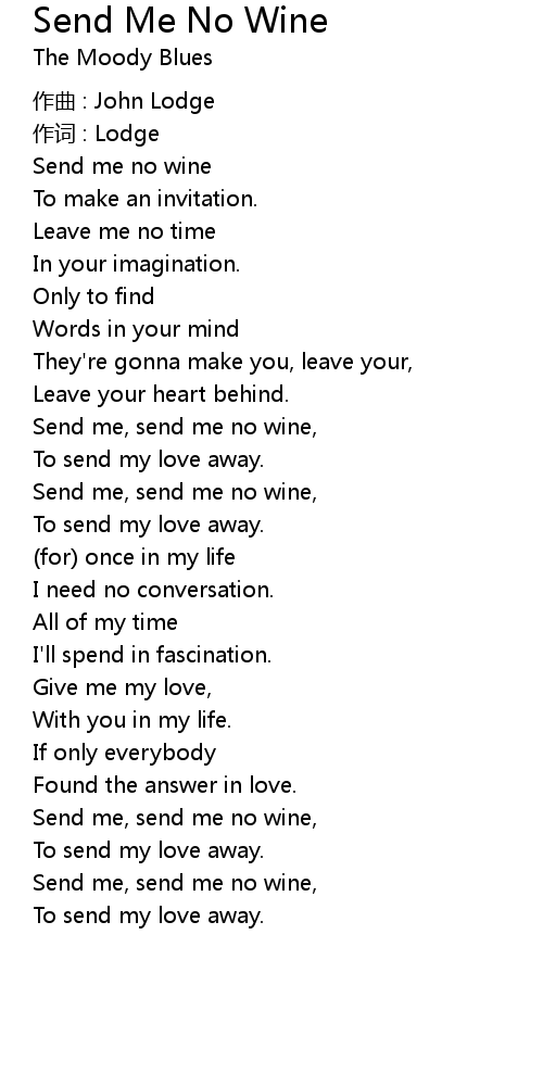 | 歌曲 | Send Me No Wine |