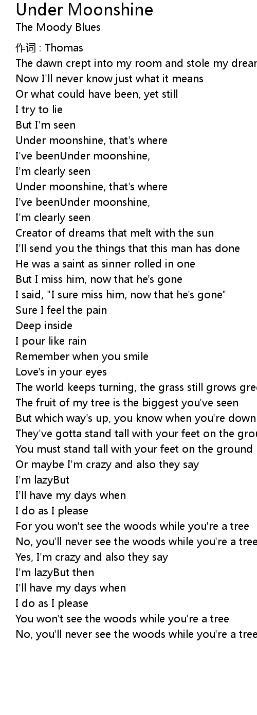 | I've beenUnder moonshine, | |
