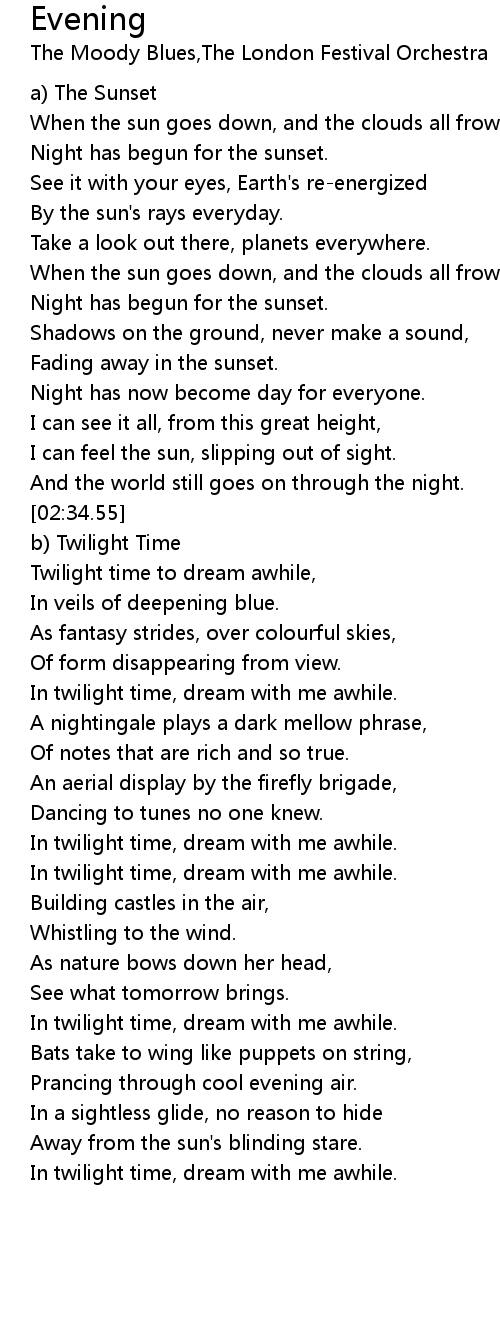 In twilight time, dream with me awhile. |