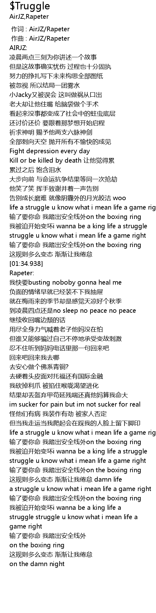 | [02:19.689] | life a struggle u know what i mean life a game right |